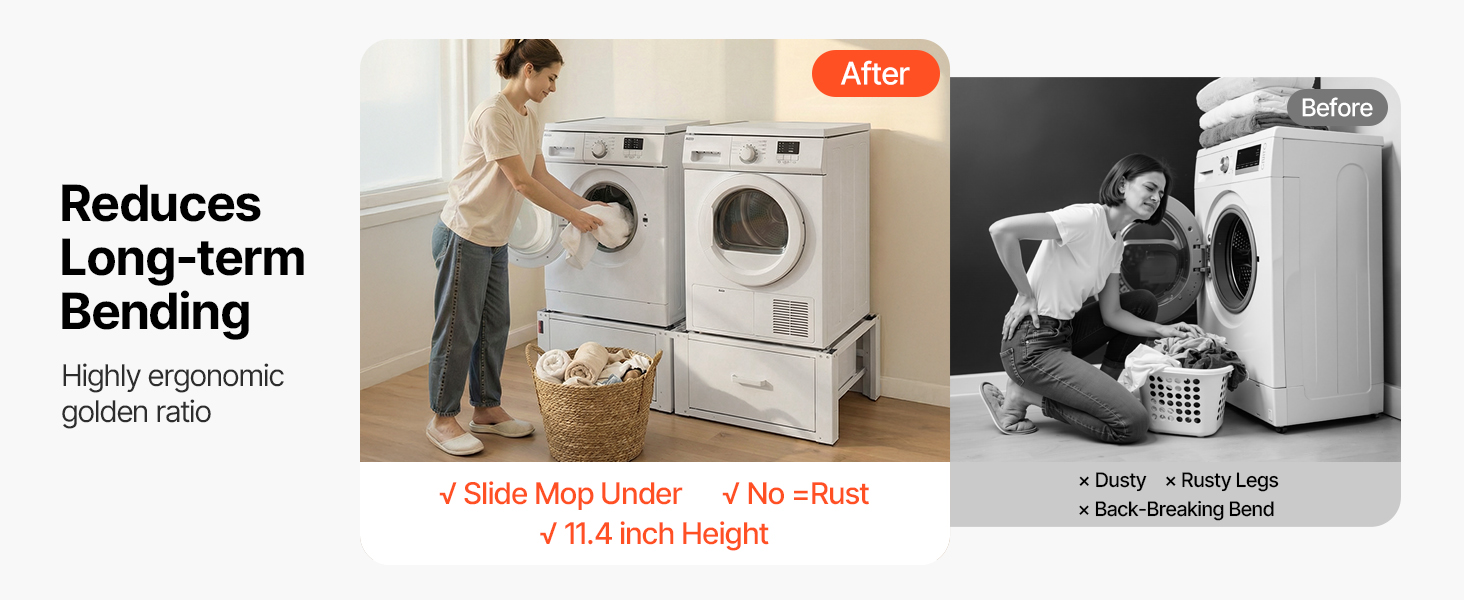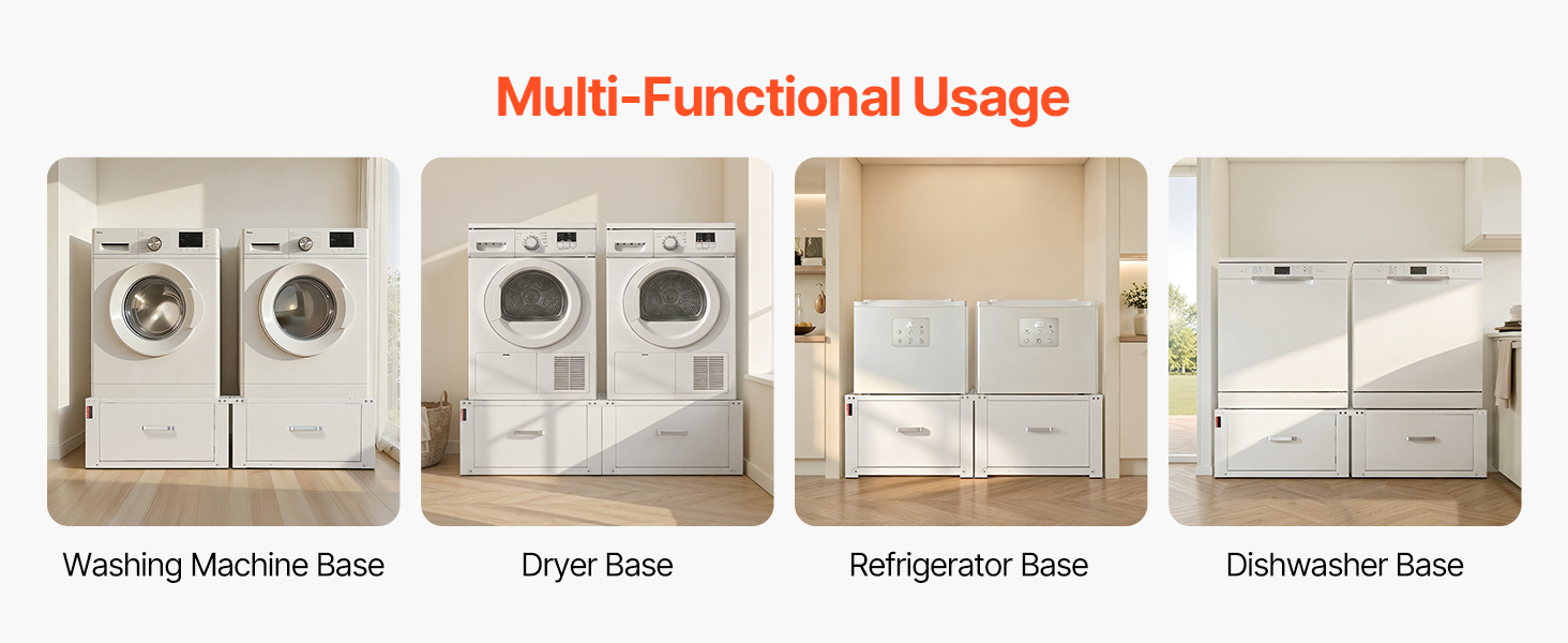 Tento podstavec je viac než len podstavec pre práčku, podporuje práčky, sušičky a dokonca aj kompaktné chladničky. Vďaka stabilnej podpore, ergonomickej pohodlnosti a tichému prevádzke zvyšuje funkčnosť aj kvalitu každodenného života.