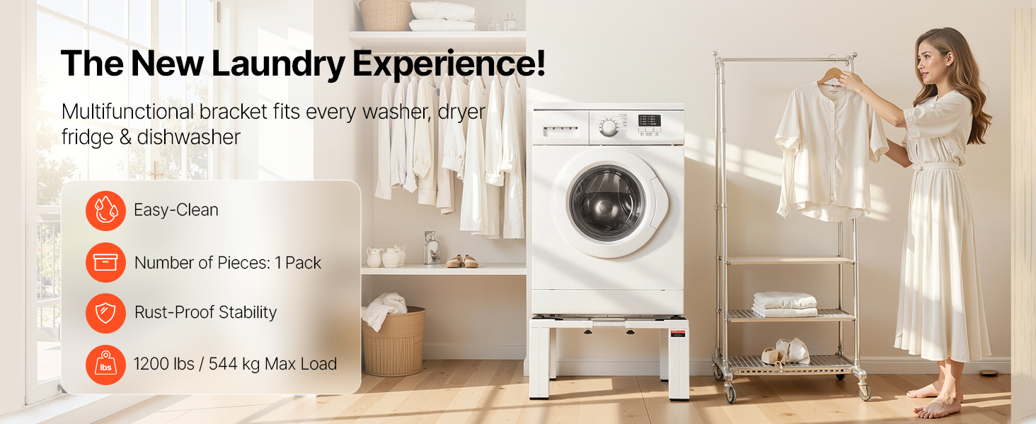 Tento univerzálny podstavec na práčku je starostlivo navrhnutý tak, aby pasoval takmer na všetky práčky a sušičky. Nech už používate Samsung, LG, Whirlpool, GE, Miele, Electrolux alebo Bosch, podstavec sa hladko prispôsobí a zaručuje bezpečnú a spoľahlivú inštaláciu.
