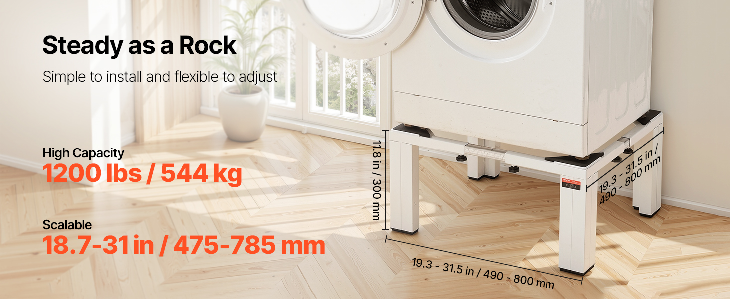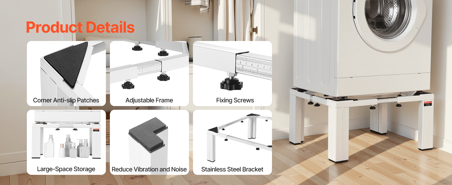Tento podstavec pod práčku a sušičku je vyrobený z vysoko kvalitnej ocele a je vhodný na domáce použitie. Zosilnený rám unesie ťažké zaťaženie bez ohybu, čím pomáha udržiavať dlhodobú stabilitu a spoľahlivý výkon.