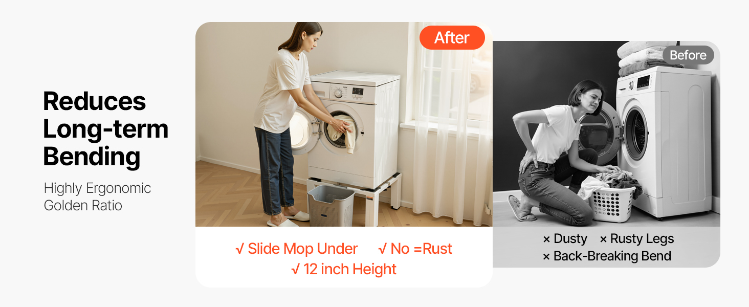 Tento podstavec je viac než len podstavec pre práčku, podporuje práčky, sušičky a dokonca aj kompaktné chladničky. Vďaka stabilnej podpore, ergonomickej pohodlnosti a tichému prevádzke zvyšuje funkčnosť aj kvalitu každodenného života.