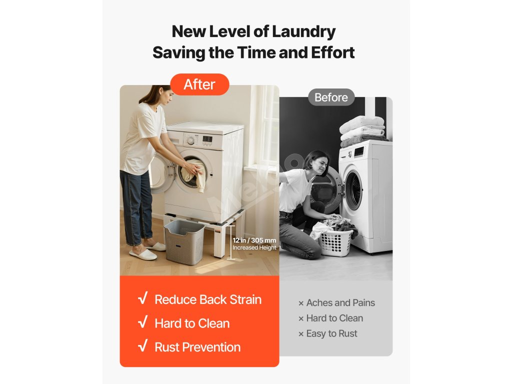 Tento podstavec na práčku zdvihne váš spotrebič do pohodlnej pracovnej výšky, čím zníži namáhanie chrbta a kolien pri každodennom praní bielizne. Prináša väčšie pohodlie a starostlivosť pri každodennom používaní, najmä pri častom nakladaní a vykladaní.
