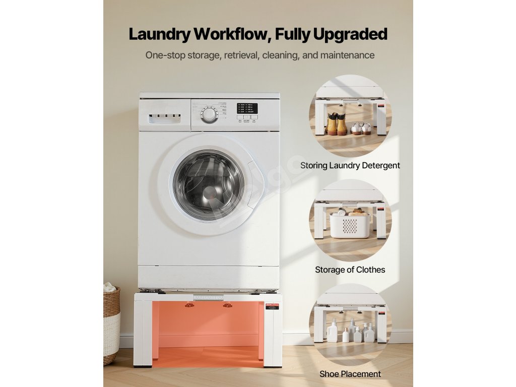 Tento podstavec je viac než len podstavec pre práčku, podporuje práčky, sušičky a dokonca aj kompaktné chladničky. Vďaka stabilnej podpore, ergonomickej pohodlnosti a tichému prevádzke zvyšuje funkčnosť aj kvalitu každodenného života.