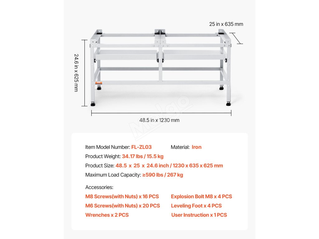 Podstavec pod práčku 48.5×25" 590LBS, dvojité tácky, 4 nohy, oceľ