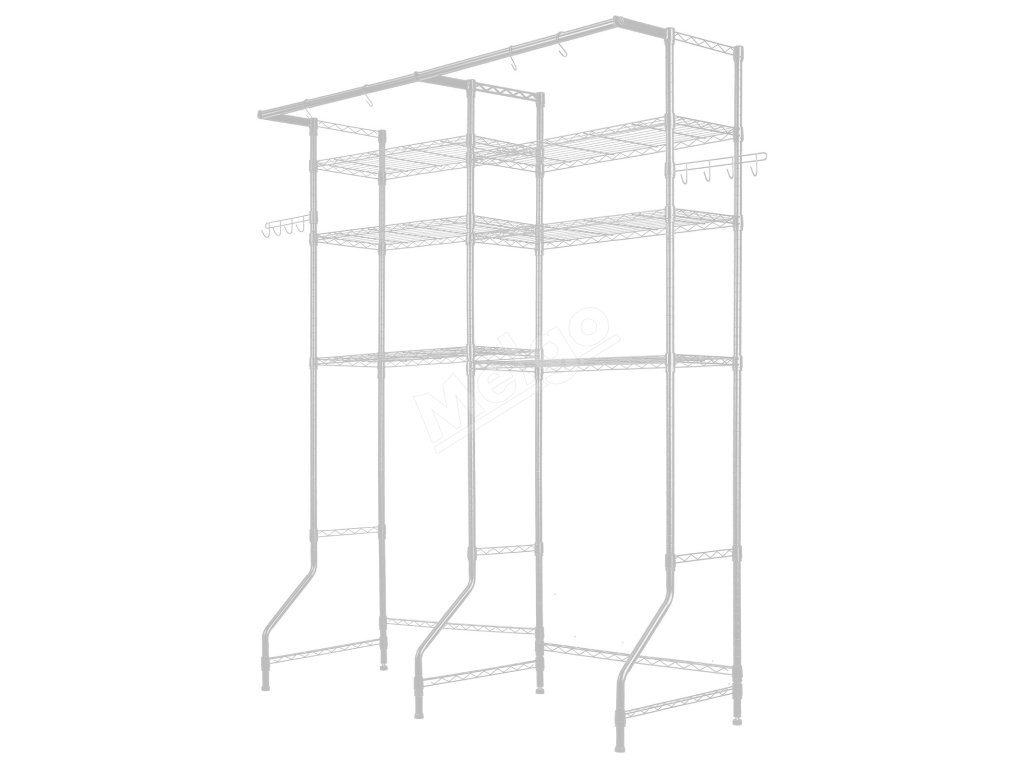 Polica nad práčku a sušičku, 6 políc, nastaviteľná, s tyčou a háčikmi