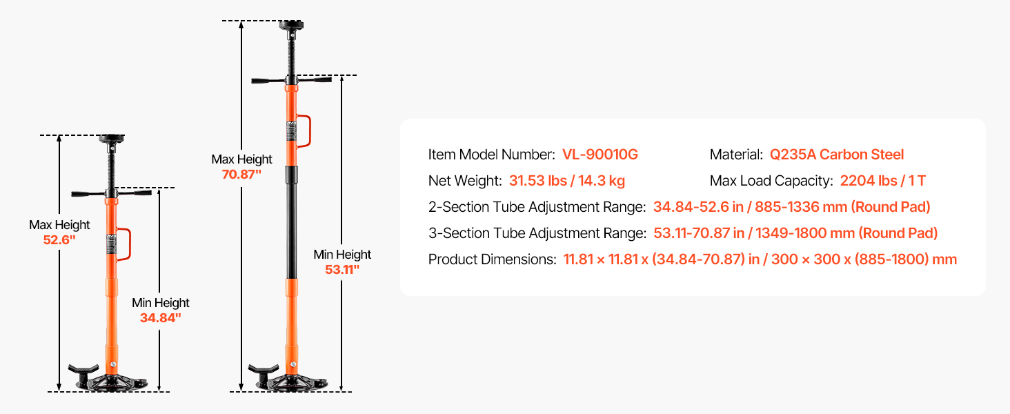 | Rozmery produktu | 11,81 x 11,81 x (34,84-70,87) palca / 300 x 300 x (885-1800) mm |