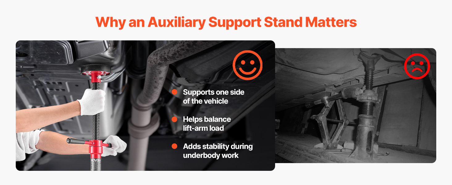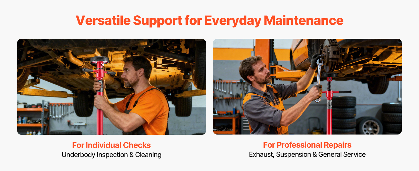 Podperný stojan pod zdvihák pomáha rozložiť sily zdvihacieho systému a znížiť posun, čím zlepšuje celkovú rovnováhu počas servisu. Vytvára stabilný základ pre dôkladnú kontrolu a opravárenské práce pod vozidlom.