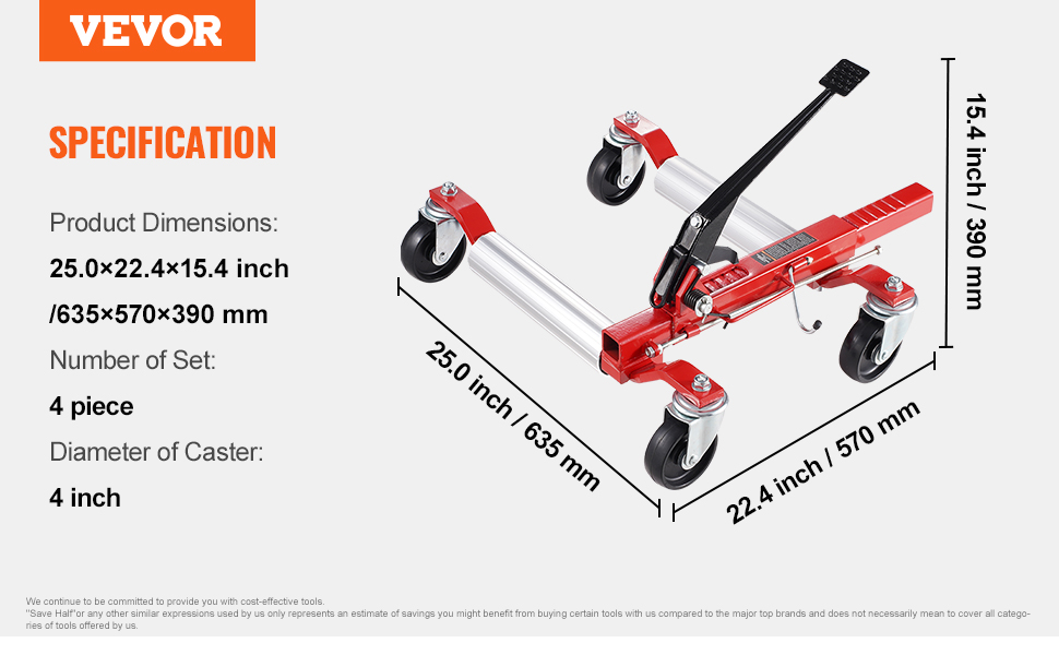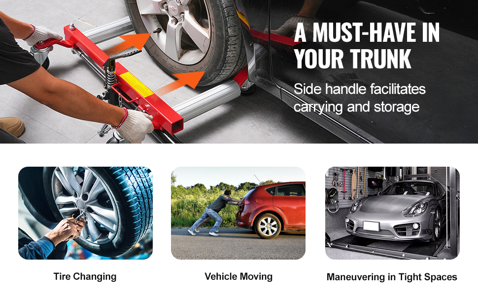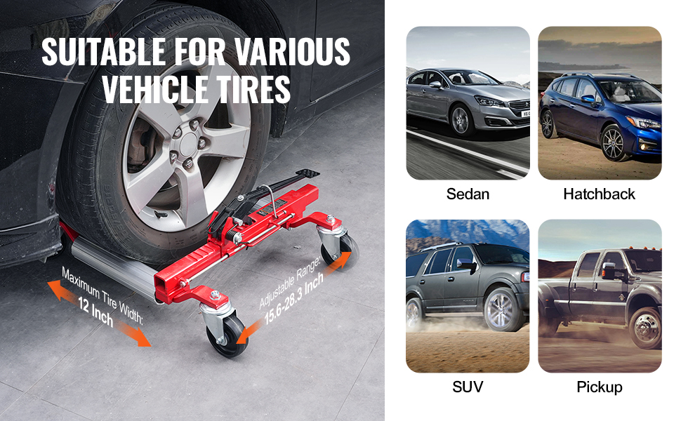 Náš pojazdný vozík s maximálnou šírkou pneumatík 12 palcov (305 mm) je kompatibilný s väčšinou modelov vozidiel. S naším výkonným vozíkom na kolesá môžete bez námahy presúvať vozidlá, vykonávať údržbárske práce a meniť pneumatiky.
