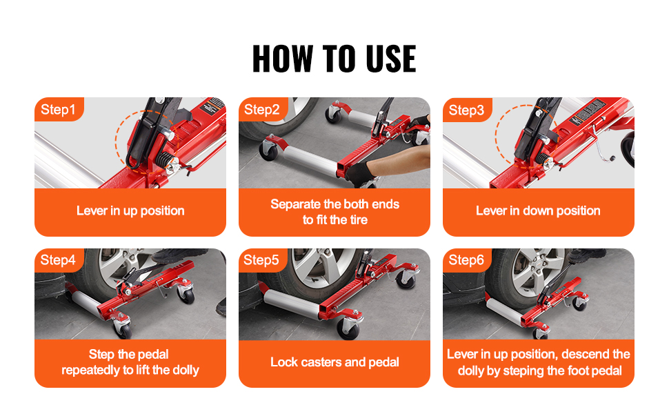 Vozík na vozidlá bez námahy zdvíha vozidlá s hmotnosťou až 1500 kg pomocou mechanizmu ovládaného pedálom. Vozík na autá je vhodný pre rôzne vozidlá vrátane osobných automobilov, SUV, rodinných automobilov, veľkých SUV, pickupov, štvorkoliek, traktorov a ďalších.