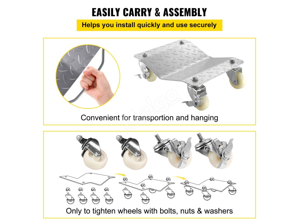 Súprava vozíkov na auto 2 ks je ideálnou voľbou pre garáže, predajné autosalóny, dielne atď. Je použiteľná aj na reštaurovanie osobných a nákladných automobilov, prívesov, traktorov, motocyklov, kosačiek na trávu, nábytku a iných zariadení.