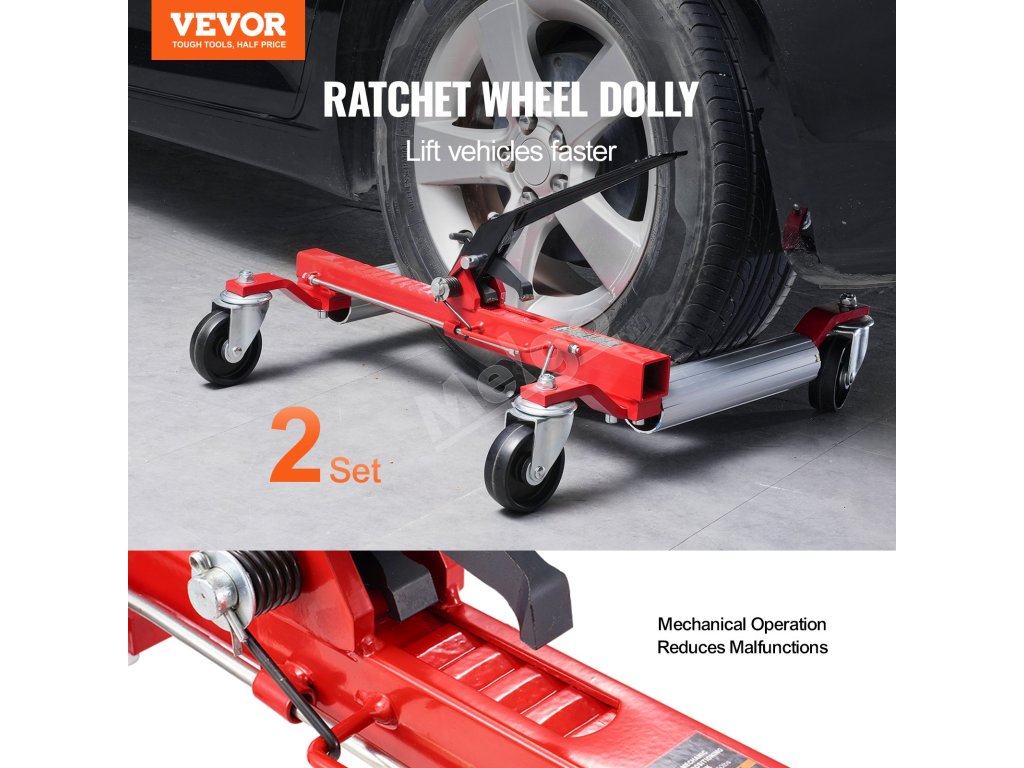 Ráčnový zdvíhací systém umožňuje rýchle a presné nastavenie výšky. Mechanická prevádzka eliminuje potrebu údržby hydraulického oleja, vďaka čomu je táto súprava vozíkov pre vozidlá vhodná na časté a dlhodobé používanie.