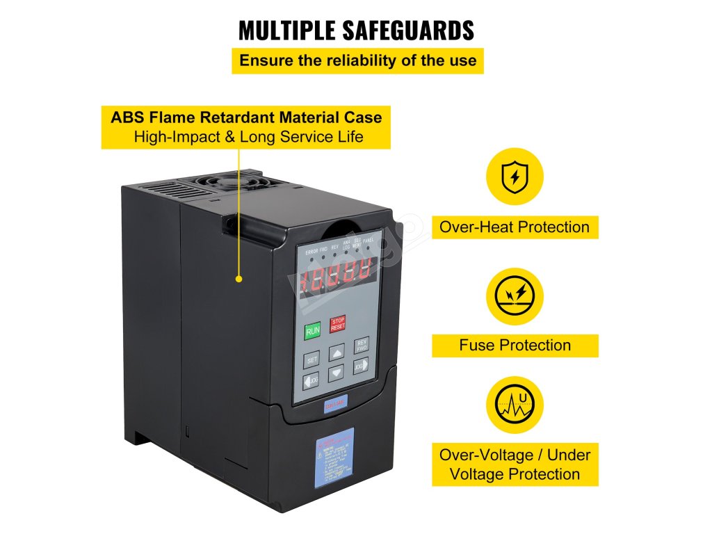 Na zabezpečenie stabilnej a spoľahlivej prevádzky frekvenčného meniča CNC je prijatých mnoho spôsobov ochrany, ako napríklad ochrana proti preťaženiu, poistková ochrana, ochrana proti prepätiu alebo podpätiu, ochrana proti opätovnému spusteniu atď.