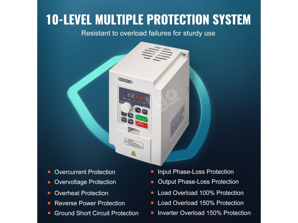 Náš VFD je vybavený inteligentným systémom ochrany, ktorý poskytuje bezpečnosť proti nadprúdu, preťaženiu, prepätiu a strate fázy. Je vyrobený prevažne z nehorľavého plastu, čo zaručuje vysoký výkon a kvalitu zvnútra.