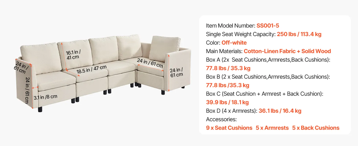 | Skrinka C (vankúš na sedadlo + opierka na ruku + vankúš na chrbát) | 39.9 libier / 18,1 kg |