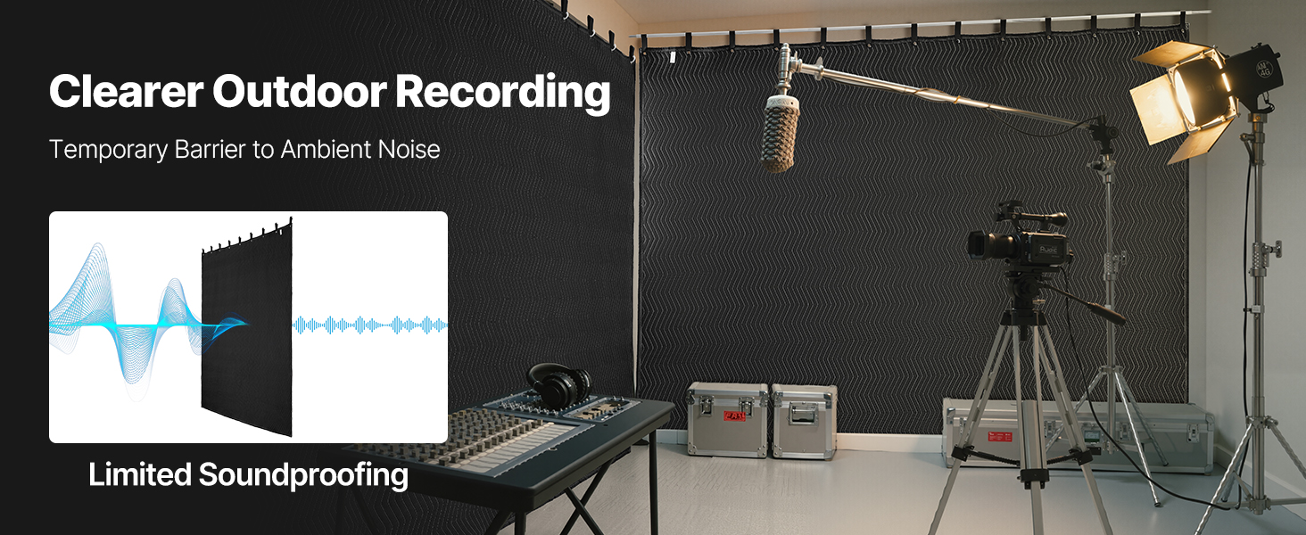 Túto zvukotesnú deku možno zavesiť na steny alebo stropy, aby sa znížili zvukové odrazy, vďaka čomu sú nahrávky v hudobných štúdiách a domácich streamovacích miestnostiach čistejšie, pretože sa minimalizuje dozvuk.