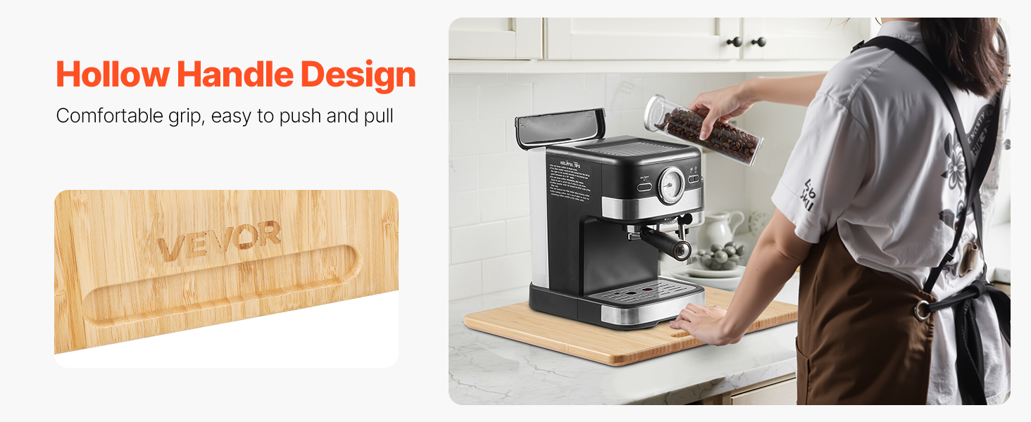 Dutá rukoväť posuvného podnosu na kolieskach umožňuje ľahké uchopenie, vďaka čomu môžete bez námahy presúvať ťažké spotrebiče, ako sú kávovary a fritézy, a šetriť tak čas a energiu.