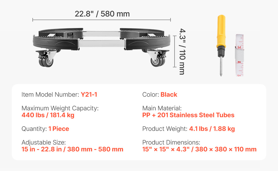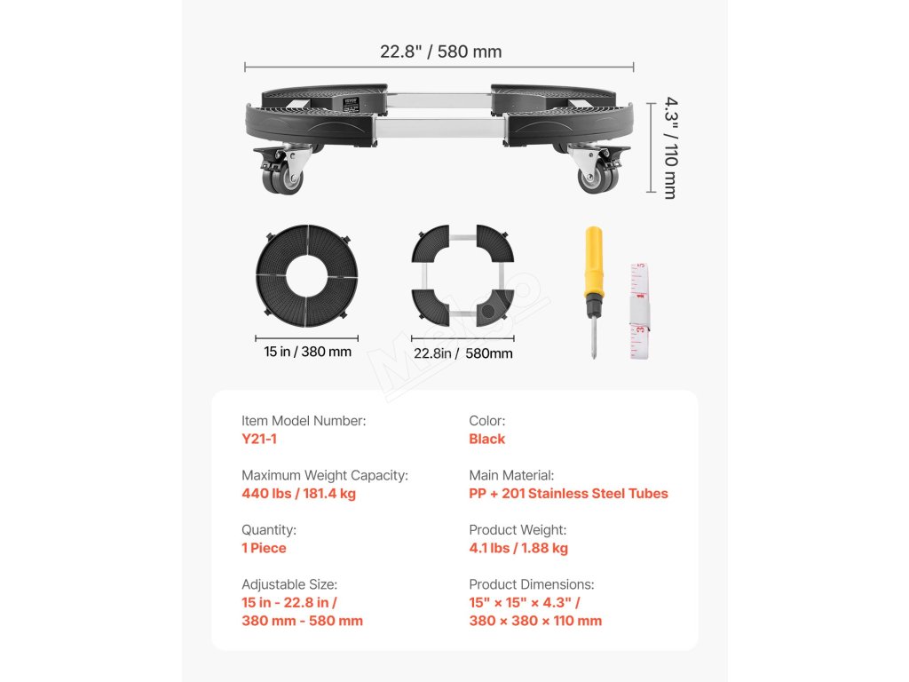 Podstavec pod kôš, 4 uzamykateľné kolieska, 440lbs, 15–22.8 in