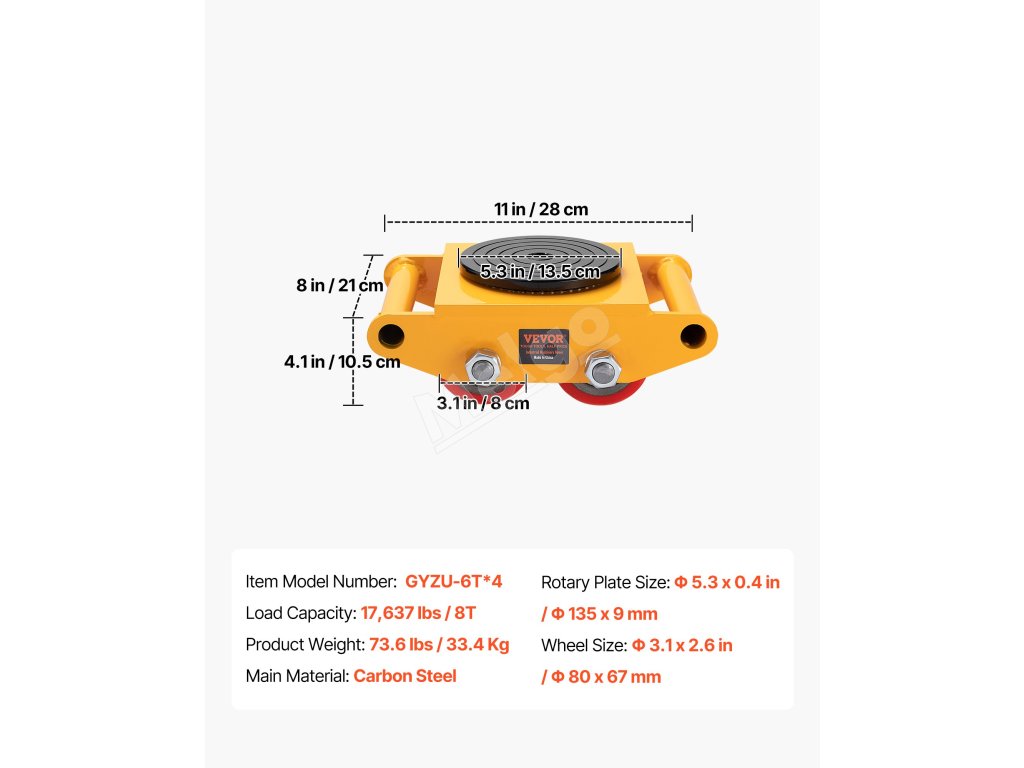 Pojazdové korčule pre stroje 4 ks, 8T, oceľ, 4 PU kolesá, 360° rotačné