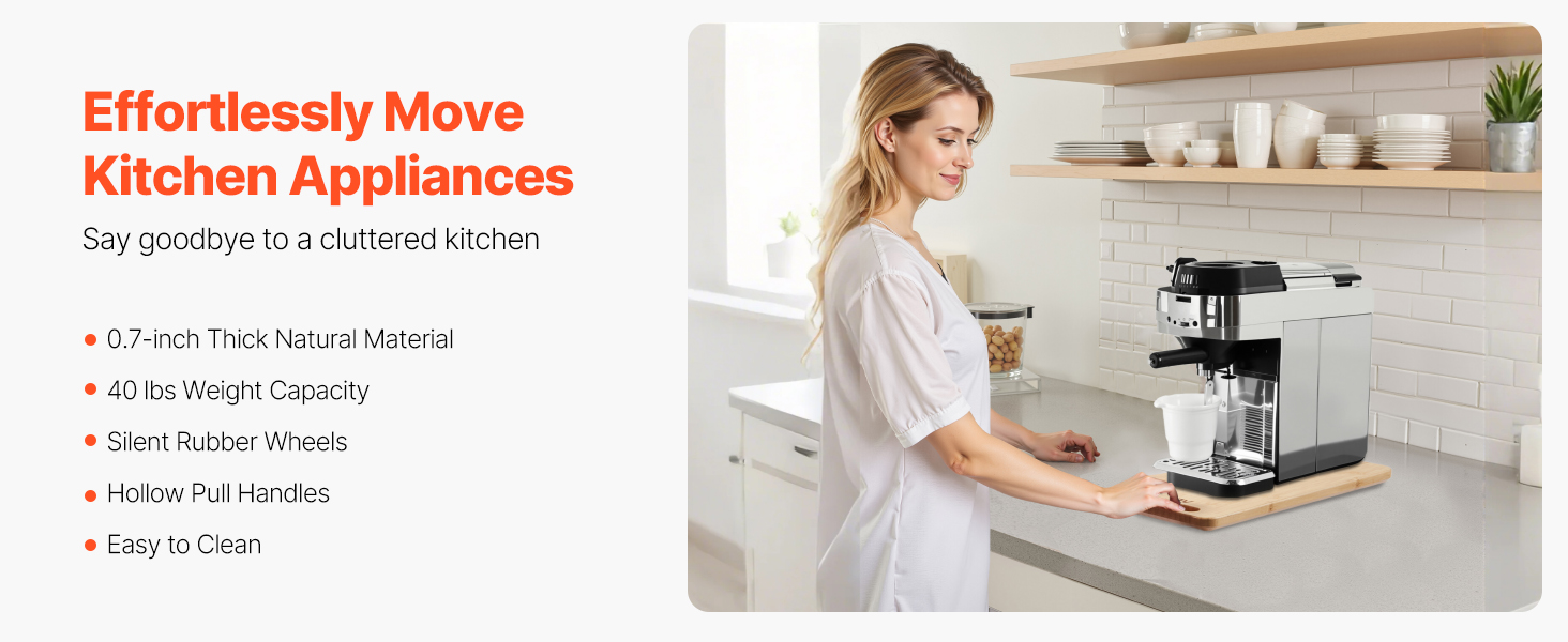 Tento posúvač spotrebičov je vyrobený z odolného materiálu s hrúbkou 0,7 palca a unesie až 40 kg. Je ideálny pre ťažké kuchynské spotrebiče a uľahčuje ich nastavenie bez kolísania.