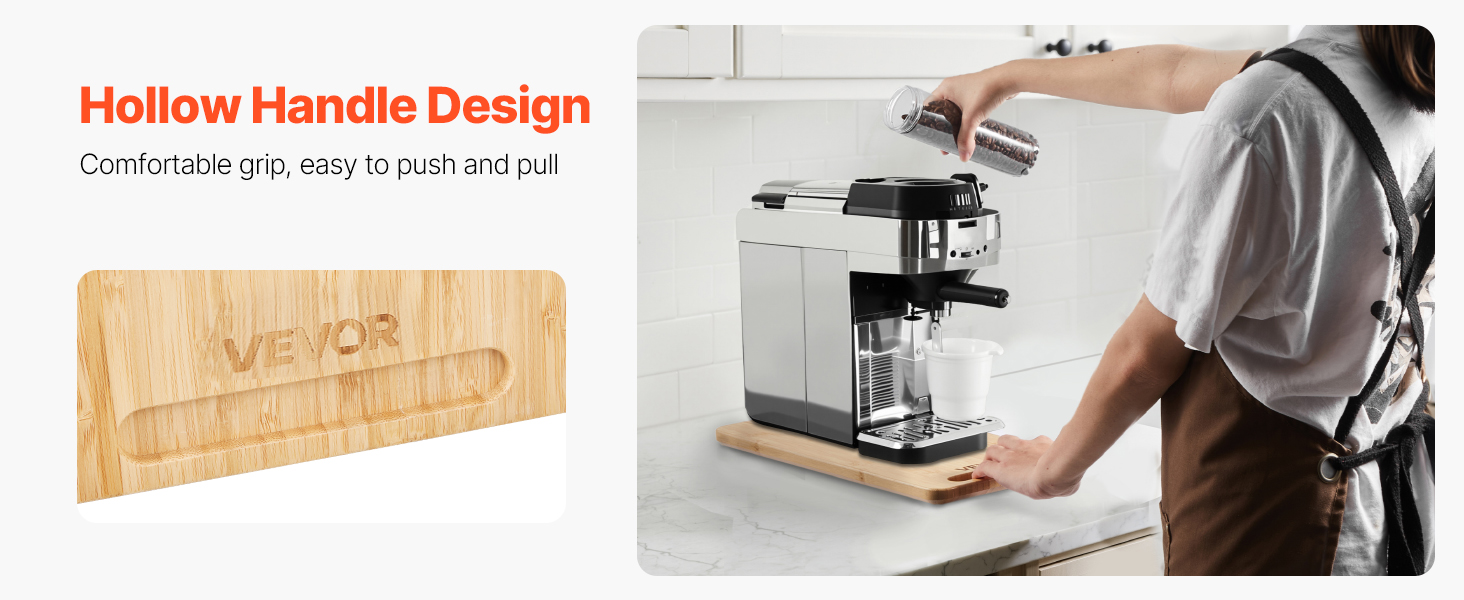 Dutá rukoväť pojazdného posuvného podnosu poskytuje ľahké uchopenie, vďaka čomu môžete bez námahy premiestňovať ťažké spotrebiče, ako sú kávovary a fritézy, a šetriť tak čas a energiu.