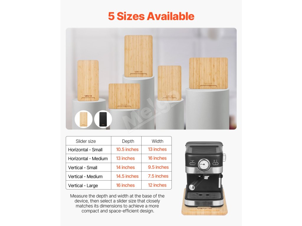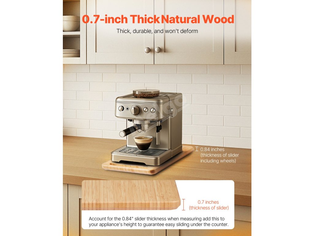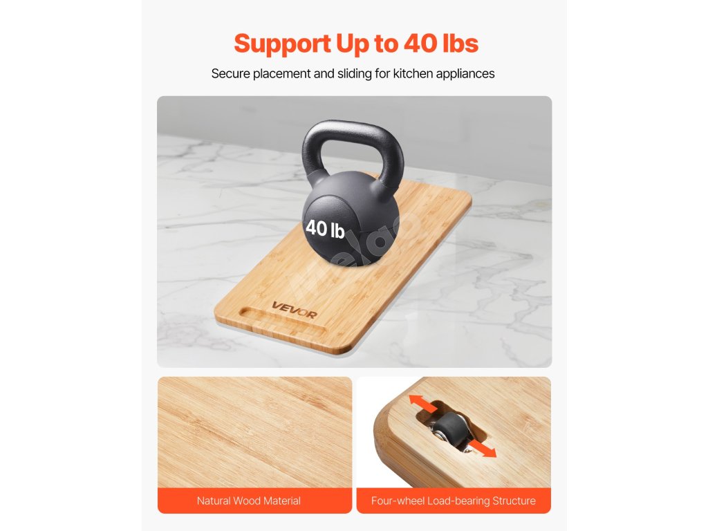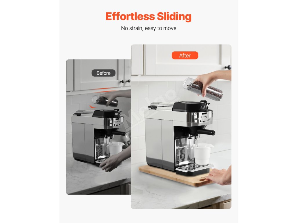 Tento posúvač spotrebičov je vyrobený z odolného materiálu s hrúbkou 0,7 palca a unesie až 40 kg. Je ideálny pre ťažké kuchynské spotrebiče a uľahčuje ich nastavenie bez kolísania.