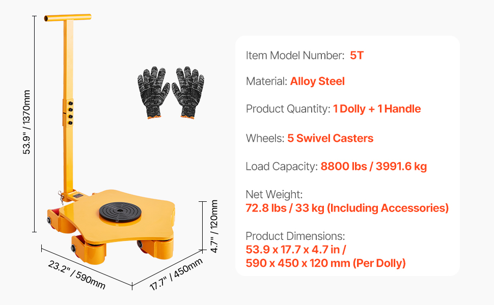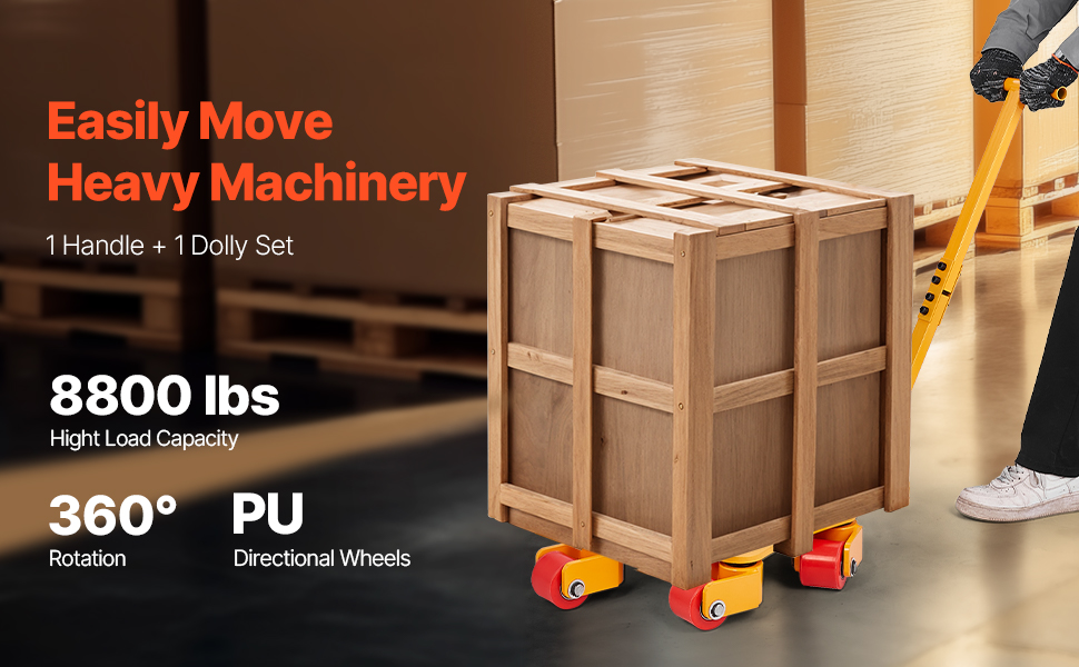 Presúvač strojov 8800 lbs, 360° otočný čap, pu otočné kolieska