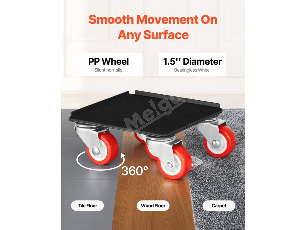Naše sťahovacie vozíky na nábytok s kolieskami majú široké uplatnenie. Jeho 360° otočné kolieska v kombinácii s konštrukciou s nízkym ťažiskom 52 mm umožňujú jednoduchú navigáciu všetkých typov nábytku bez ohľadu na veľkosť alebo výšku v zložitom domácom prostredí.