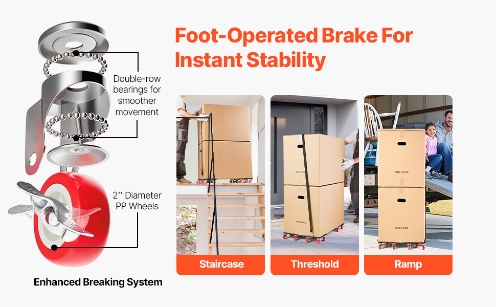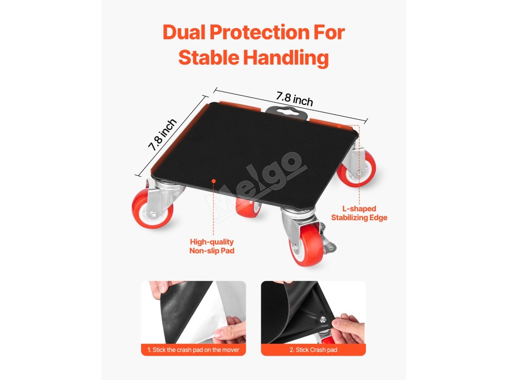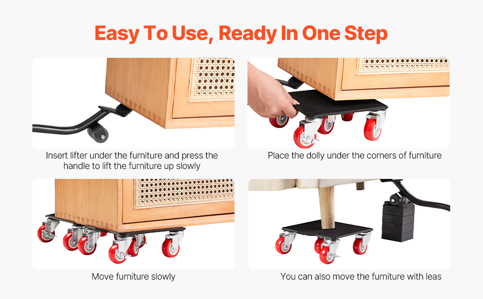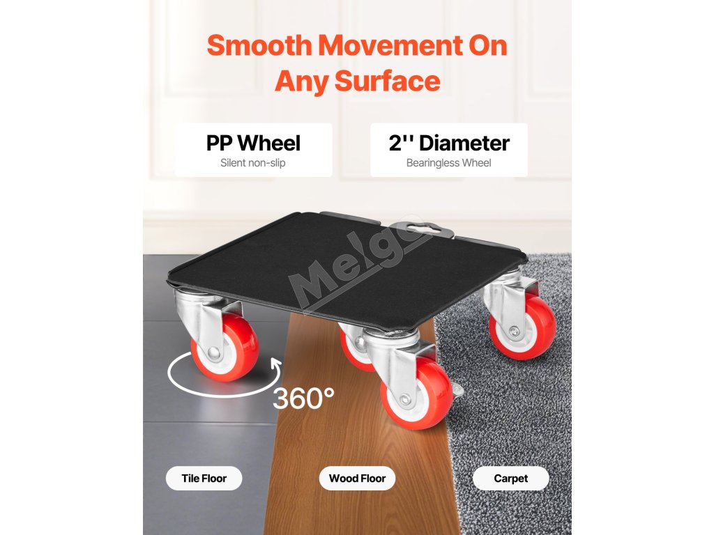 Naše sťahovacie vozíky na nábytok s kolieskami majú široké uplatnenie. Jeho 360° otočné kolieska v kombinácii s konštrukciou s nízkym ťažiskom 52 mm umožňujú jednoduchú navigáciu všetkých typov nábytku bez ohľadu na veľkosť alebo výšku v zložitom domácom prostredí.