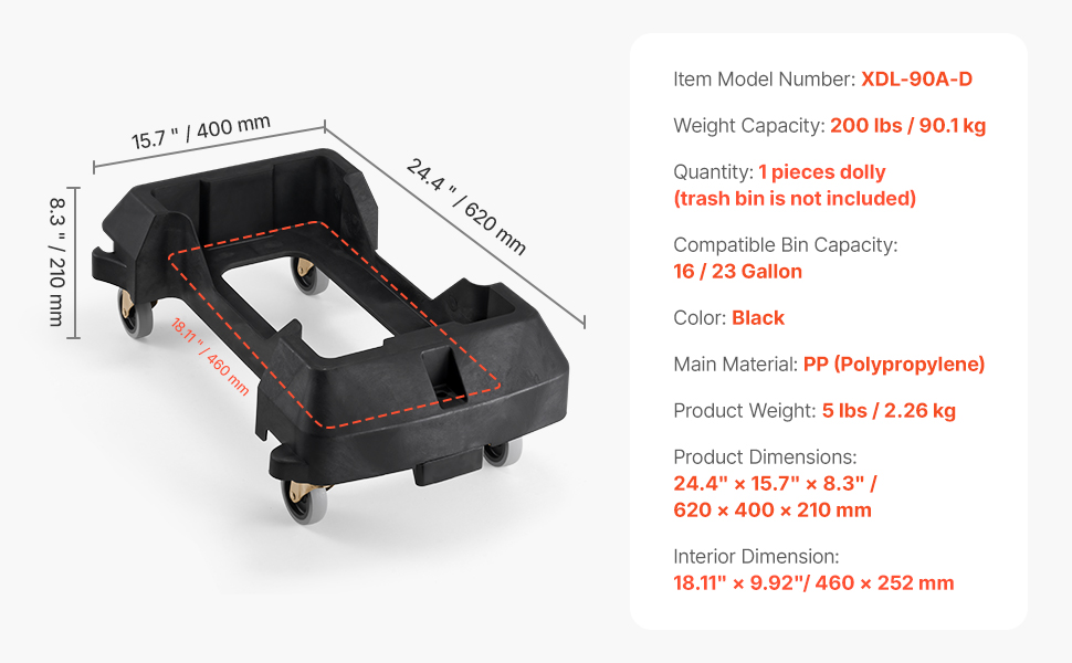 Tento vozík na odpadkové koše, ktorý je kompatibilný so 16/23-galónovými a tenkými košmi, znižuje námahu pri zdvíhaní a umožňuje efektívnu prepravu odpadu. Bez námahy premiestnite viacero košov pomocou uvoľňovacieho nožného pedálu. Je vybavený 3" otočnými kolieskami pre tichý pohyb bez poškriabania. Vyrobené z PP odolného proti poškriabaniu pre zvýšenú odolnosť.
