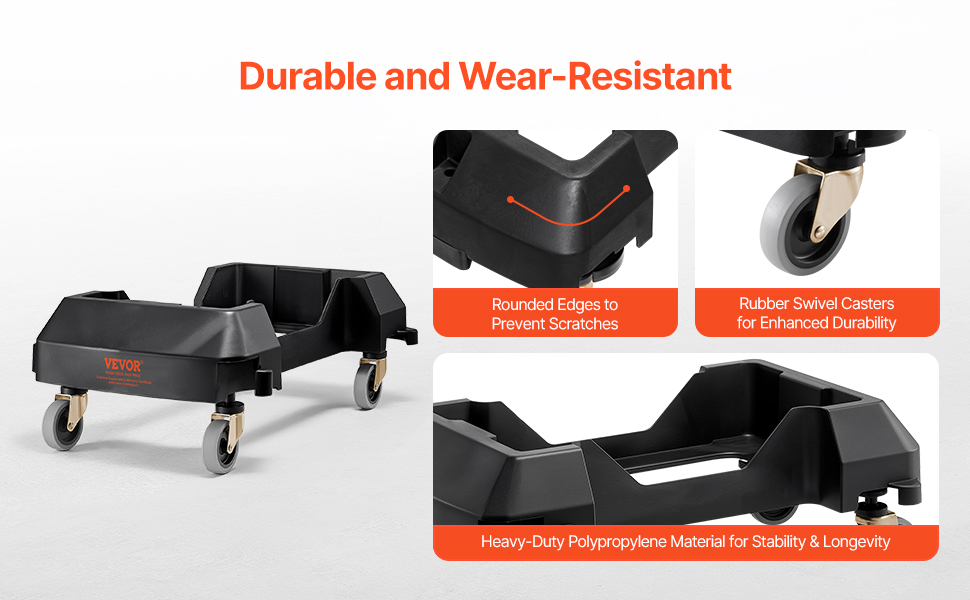 Zaoblené hrany zabraňujú poškodeniu odieraním. Gumové kolieska znižujúce hluk poskytujú protišmykovú stabilitu. Zostavené z polypropylénovej konštrukcie s vysokou odolnosťou voči opotrebovaniu a dlhotrvajúcou nosnosťou v náročných prostrediach.