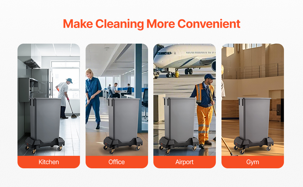 Podstavec na kolieskach na odpadkové koše je ideálny do rôznych prostredí vrátane kuchýň, kancelárií, letísk a štadiónov. Poskytuje spoľahlivé riešenia nakladania s odpadom pre potreby domácností aj komerčných firiem vďaka prispôsobivému dizajnu a robustnému výkonu.