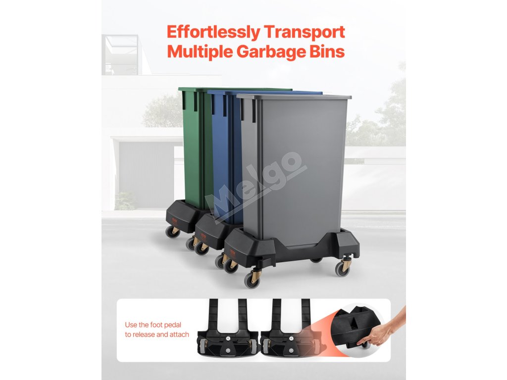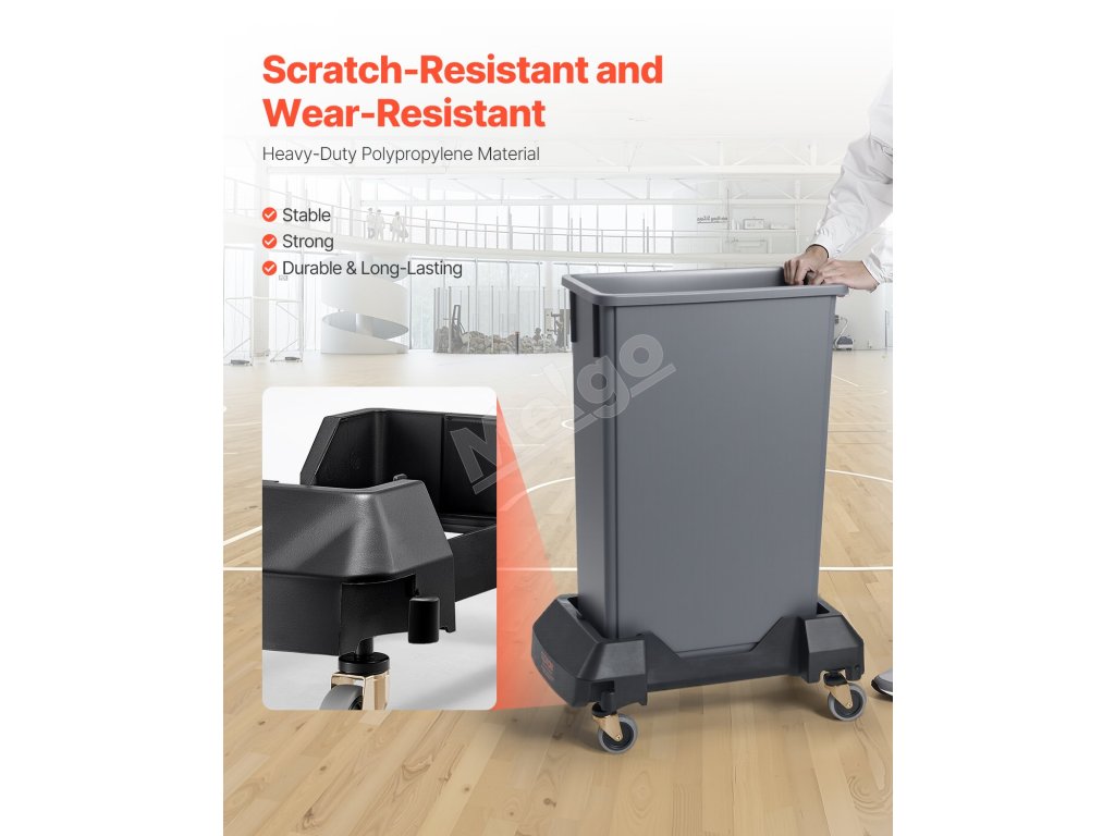Tento vozík na odpadkové koše, ktorý je kompatibilný so 16/23-galónovými a tenkými košmi, znižuje námahu pri zdvíhaní a umožňuje efektívnu prepravu odpadu. Bez námahy premiestnite viacero košov pomocou uvoľňovacieho nožného pedálu. Je vybavený 3" otočnými kolieskami pre tichý pohyb bez poškriabania. Vyrobené z PP odolného proti poškriabaniu pre zvýšenú odolnosť.