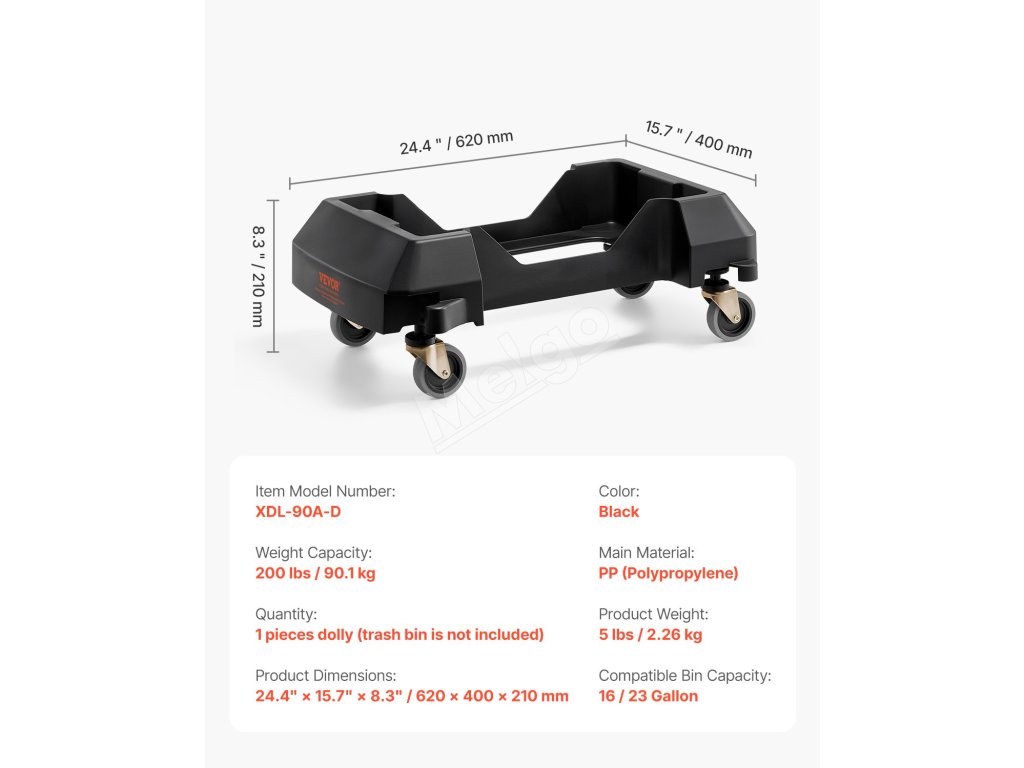 Vozík pre 16/23 gallon nádoby, 4 zamykateľné kolieska, nosnosť 200lbs