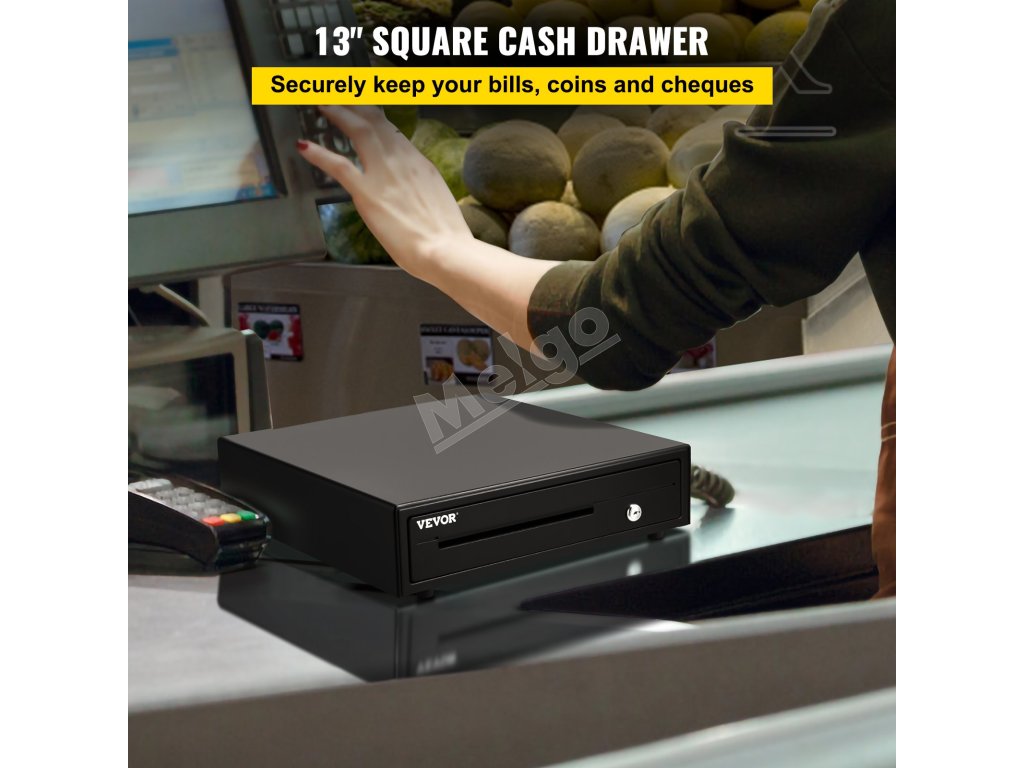 Táto pokladničná zásuvka sa skladá z odolných a pevných oceľových dosiek, oceľových svoriek a plastových priehradiek ABS. Všetky materiály zabezpečujú odolné a dlhodobé používanie. Okrem toho robustný kovový rám bezpečne zabraňuje poškriabaniu alebo poškodeniu mien.