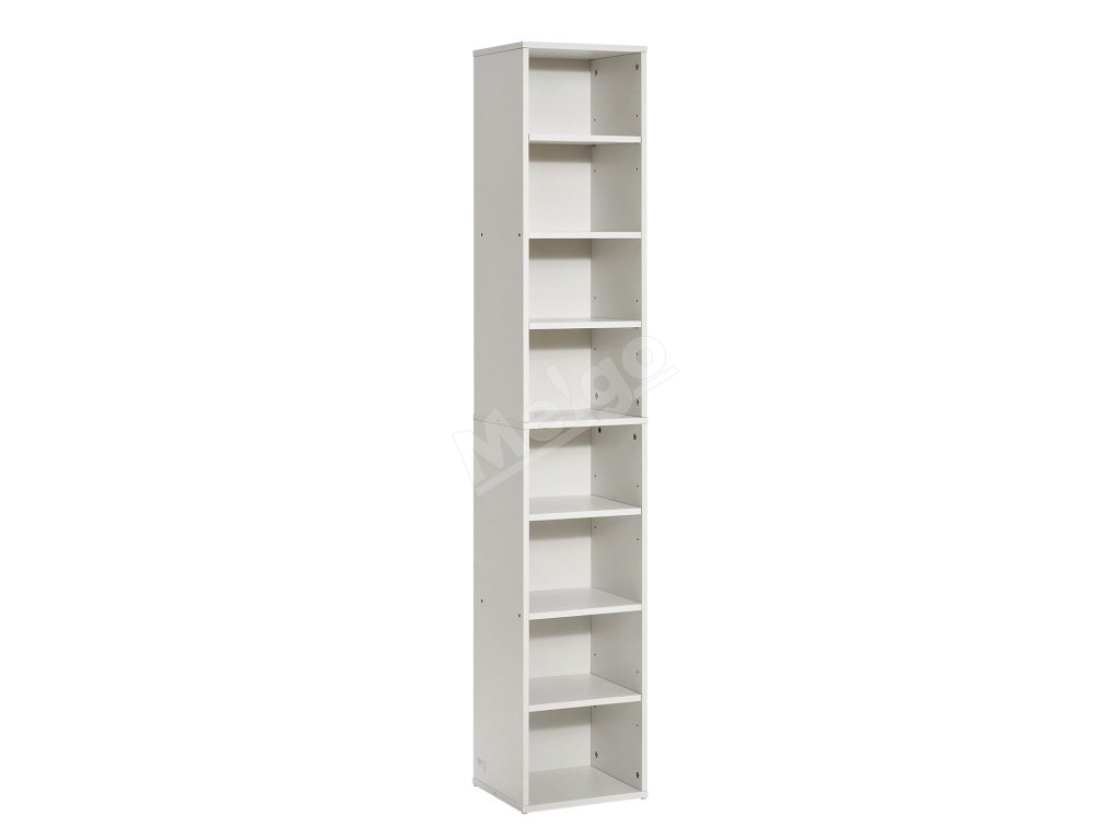 Úzky 8-policový regál na knihy 71 in, nastaviteľné police, biely
