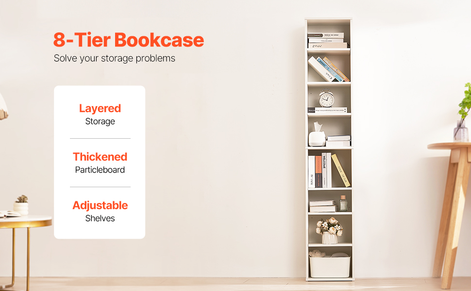 Táto 8-poschodová knižnica má vertikálny dizajn, ktorý maximalizuje priestor, takže je ideálna do rohov v obývačke, pracovni alebo spálni.