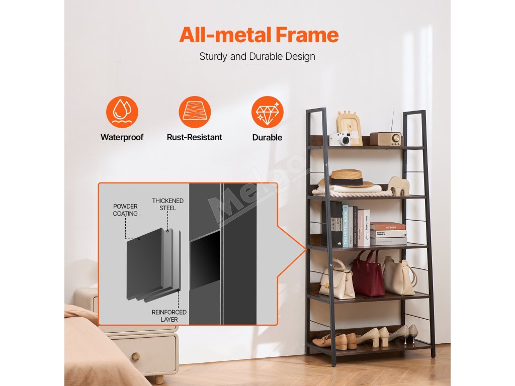 Kovový regál na knihy, 5 políc, voľne stojaci do obývačky a kancelárie