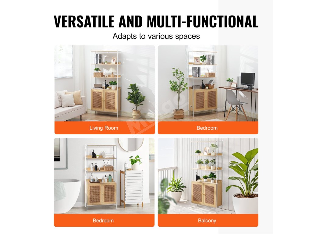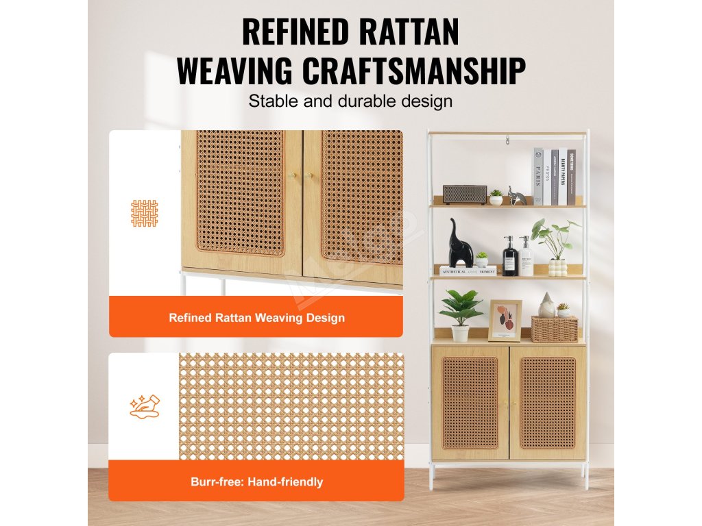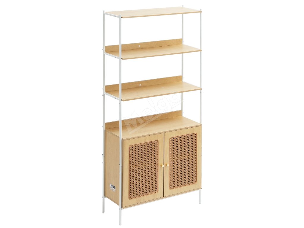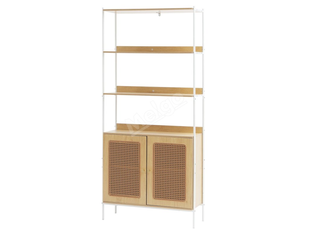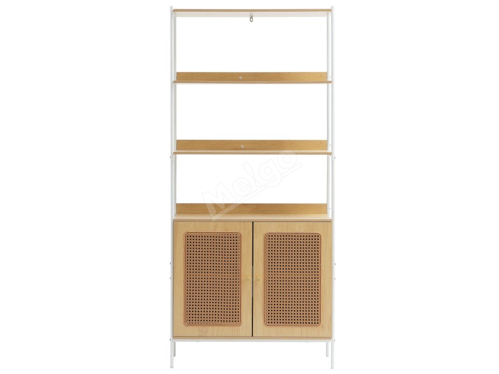 Ratanový regál rebríkový, 2 dvierka, otvorené police, voľne stojací