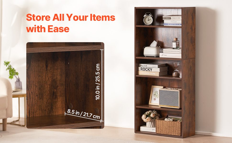 Táto 5-poschodová knižnica má vertikálny dizajn, ktorý maximalizuje priestor, takže je ideálna do rohov v obývačke, pracovni alebo spálni.