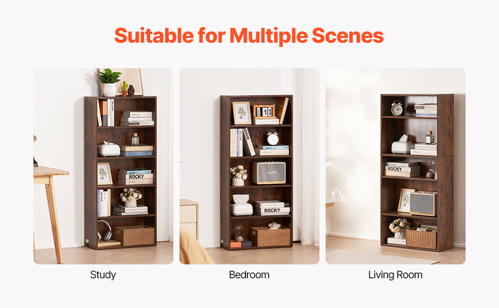 Otvorená konštrukcia knižnice a širšie a hlbšie police vám umožnia ľahko vystaviť a sprístupniť knihy, fotografie, fotoaparáty a iné dekoratívne predmety.