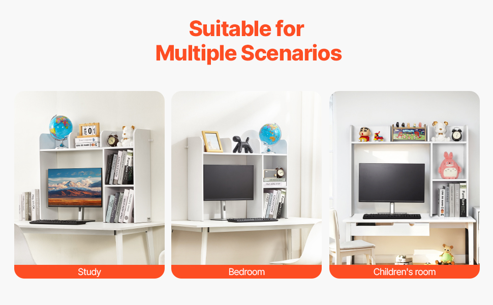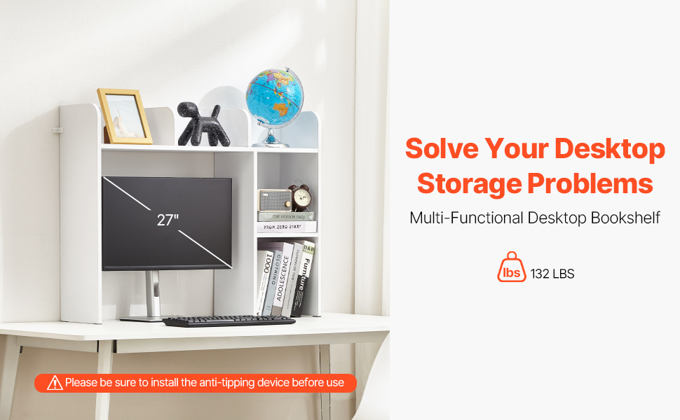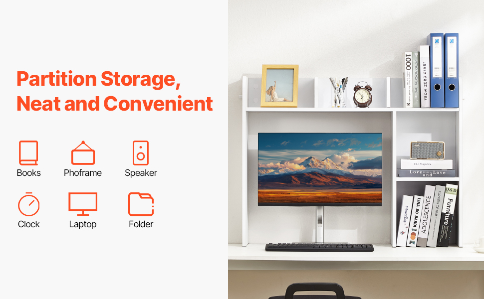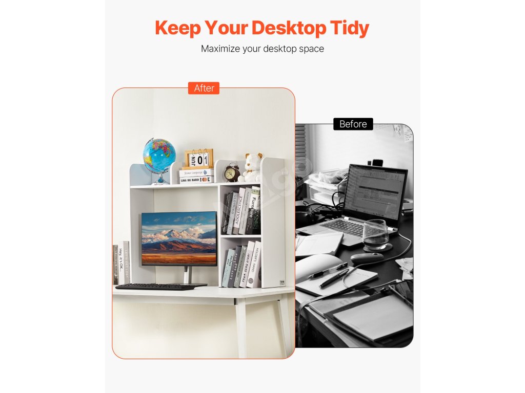 Rozlúčte sa s neporiadkom vďaka našej stolovej polici na knihy. Police s hrúbkou 0,6 palca unesú až 132 libier / 60 kg, čo je ideálne pre knihy, fotografie, slúchadlá a dekorácie. Môžete v nej usporiadať kancelárske súbory, knihy a ďalšie veci doma alebo v práci.