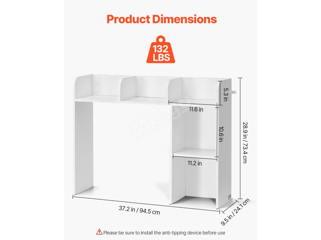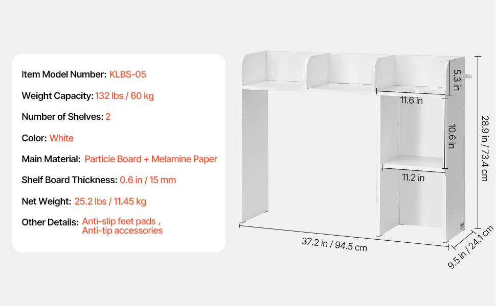 Tento stolový regál je robustný a odolný, vyrobený z 0,6-palcovej hrubej drevotrieskovej dosky, ktorá je hladká, vodoodolná, odolná proti poškriabaniu a ľahko sa čistí - ponúka pevný základ pre všetky vaše knihy.
