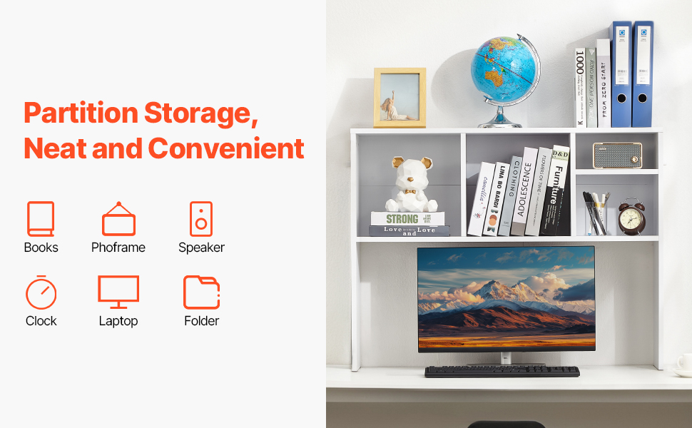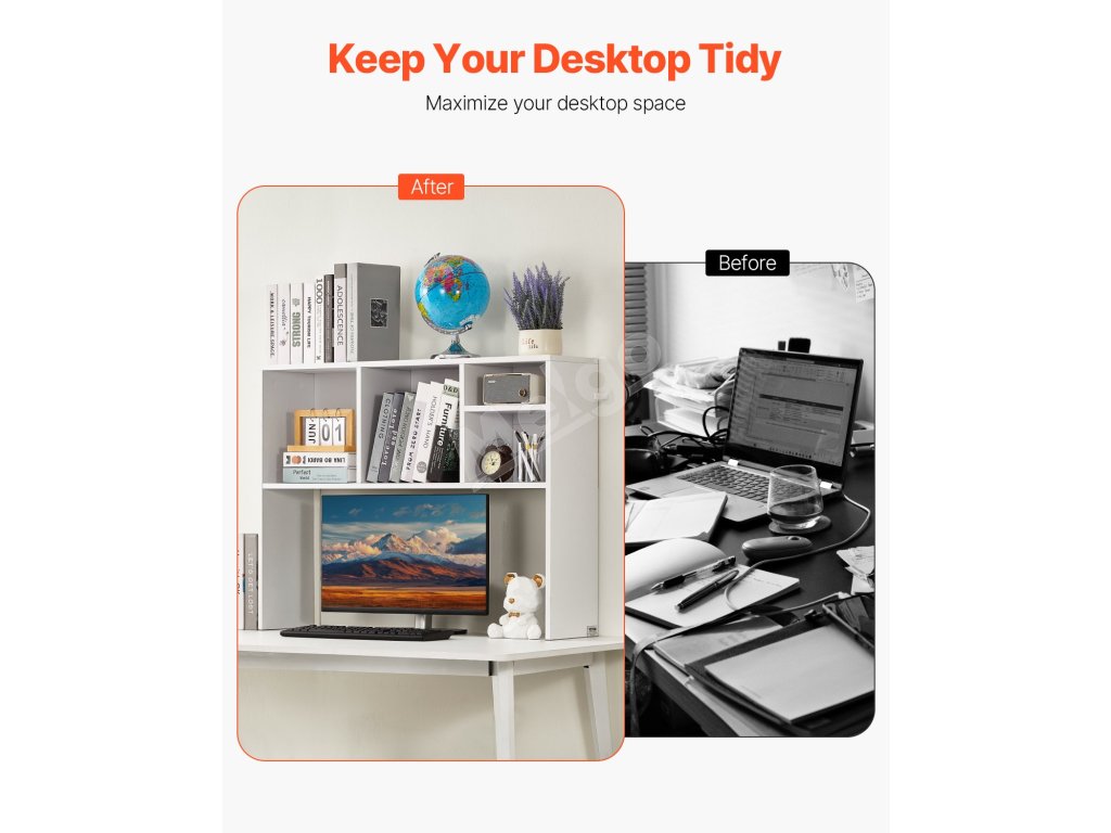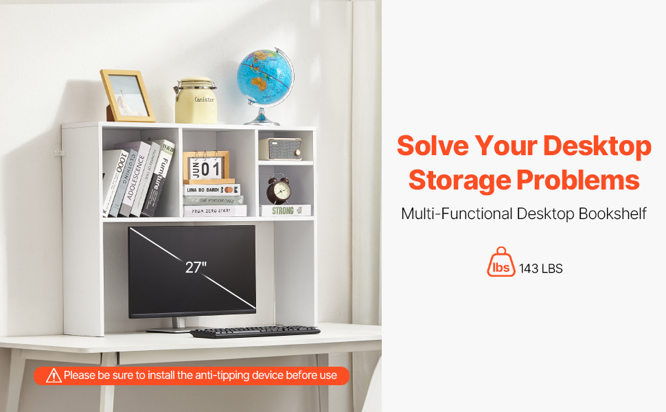 Rozlúčte sa s neporiadkom vďaka našej stolovej polici na knihy. Police s hrúbkou 0,6 palca unesú až 143 libier / 65 kg, čo je ideálne pre knihy, fotografie, slúchadlá a dekorácie. Môžete v nej usporiadať kancelárske súbory, knihy a ďalšie veci doma alebo v práci.