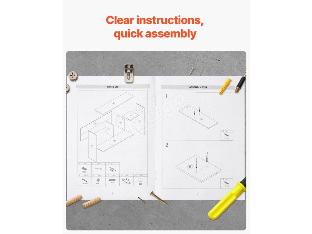 Podrobný návod na montáž nájdete v používateľskej príručke, ktorá vám umožní rýchlo a jednoducho zostaviť tento stolový regál.