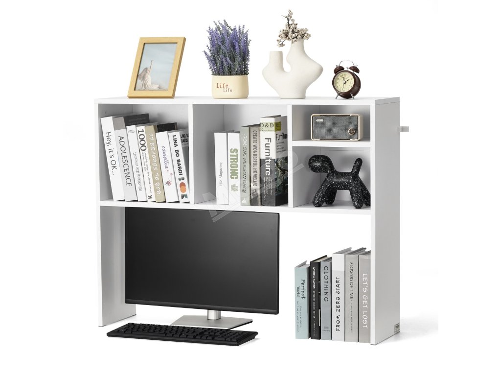 Táto stolová policová koľajnica vybavená viacerými priehradkami na usporiadanie kníh, kancelárskych potrieb a ďalších vecí pomáha vytvoriť uprataný pracovný priestor a zvyšuje produktivitu.