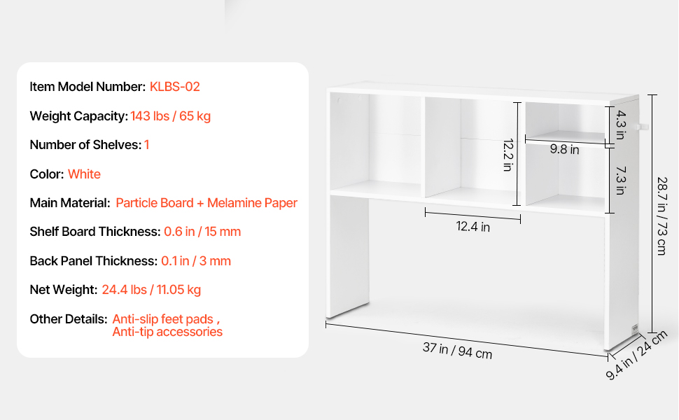 Tento stolový regál je robustný a odolný, vyrobený z 0,6-palcovej hrubej drevotrieskovej dosky, ktorá je hladká, vodoodolná, odolná proti poškriabaniu a ľahko sa čistí - ponúka pevný základ pre všetky vaše knihy.