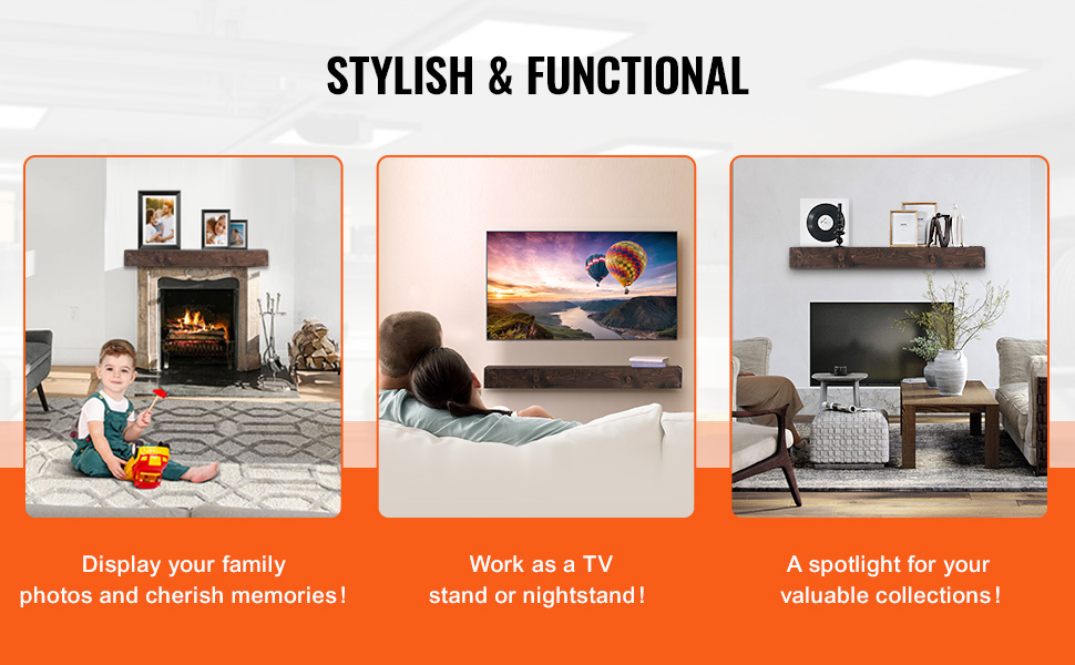 Nástenný plávajúci krbový nadstavec 72"×8"×5", nosnosť 50 lbs