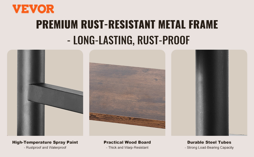 Naše police z kovových rúrok sú vyrobené z vysokokvalitných oceľových rúrok a povrch je ošetrený vysokoteplotným nástrekom, ktorý zabraňuje hrdzaveniu a je odolný voči vode, čo výrazne predlžuje životnosť výrobku.