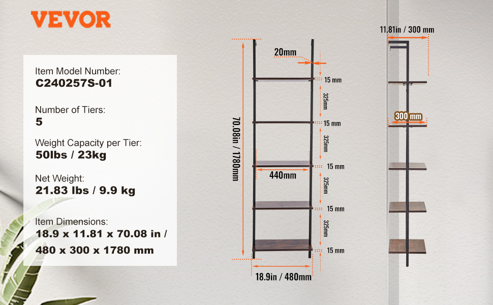 | Špecifikácia | 18.9 x 11,8 x 70 palcov (480 x 300 x 1780 mm) |