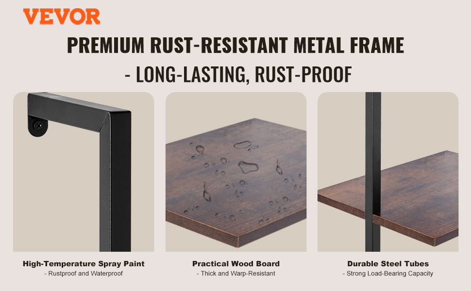 Naše police z kovových rúrok sú vyrobené z vysokokvalitných oceľových rúrok a povrch je ošetrený vysokoteplotným nástrekom, ktorý zabraňuje hrdzaveniu a je odolný voči vode, čo výrazne predlžuje životnosť výrobku.