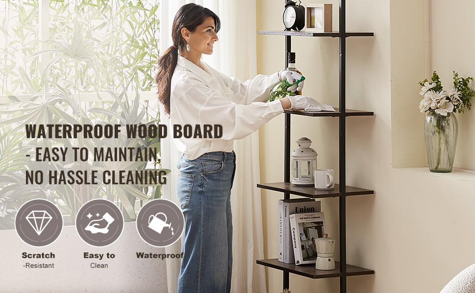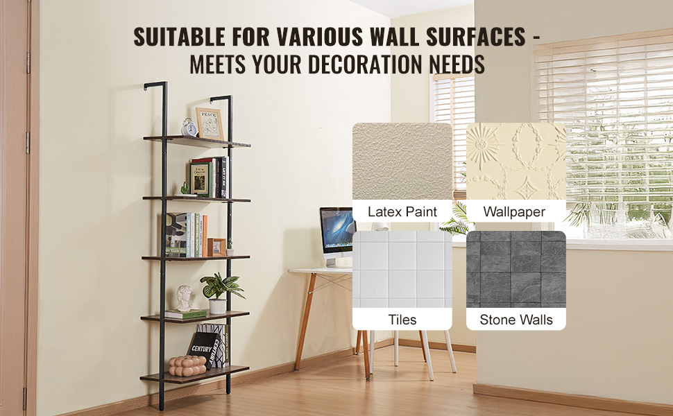 Nástenná rebríková polica 5 políc, 17.3×11.8in, s kovovým rámom